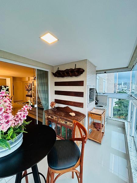 ✅ Sacada com churrasqueira a carvão já fechada com blindex