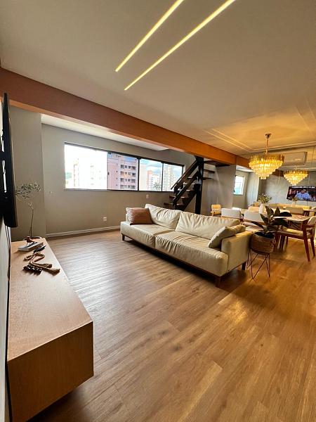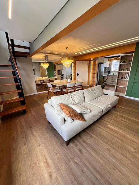 Cobertura duplex exclusiva com 214,90 m² privativos, totalmente mobiliada, decorada e climatizada, ideal para quem busca patrimônio sólido, liquidez e valorização.